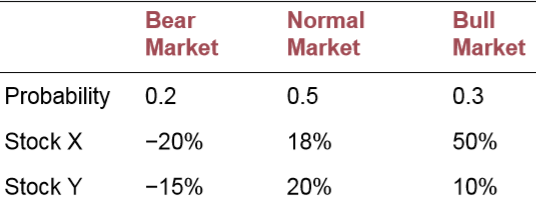 Use the following scenario analysis for stocks X and Y to answer below the CFA Question: