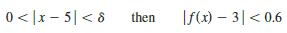 0 < |x - 5|< 8 \f(x) – 3|< 0.6 then y. 3.6 3 2.4 5 5 5.7 4.