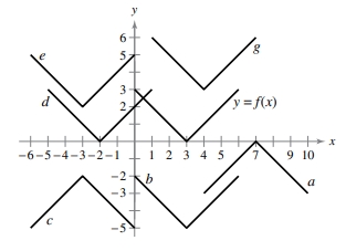 > Use the graph of f shown in the figure to sketch the graph of each function. To print an enlarged copy of the graph, go to MathGraphs.com. a. f(x + 3) b. f(x − 1) c. f(x) + 2 d. f(x) − 4 e. 3f(x) f. 1/4 f(x) g