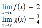 > Find the limits. f(x) = 2x2 − 3x + 1, g(x) =∛x + 6 a. / b. / c. /