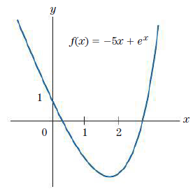 > The graph of f (x) = -5x + ex is shown in Fig. 4. Find the coordinates of the minimum point. Figure 4: 1 0 Y f(x) = -5x + ex 1 2 x