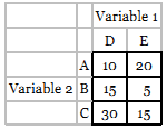 A Variable 2 B C Variable 1 DE 10 15 30 20 5 15