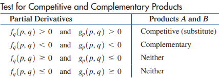 > Use this test in Problem to determine whether the indicated products are competitive, complementary, or neither. The daily demand equations for the sale of brand A coffee and brand B coffee in a supermarket are x = ((p, q) = 200