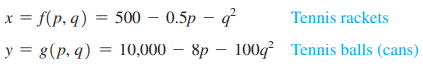 The monthly demand equations for the sale of tennis rackets and tennis balls in a sporting goods store are