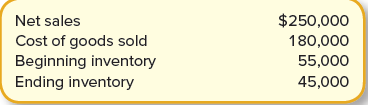 Using the amounts below, calculate the inventory turnover ratio, average days in inventory, and gross profit ratio.