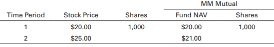 Using the data in the following table, assume you are using a constant-dollar plan with a rebalancing trigger of $1,500. The stock price represents your speculative portfolio, and the MM mutual fund represents your conservative portfolio. What action, if any, should you take in time period 2? Be specific.