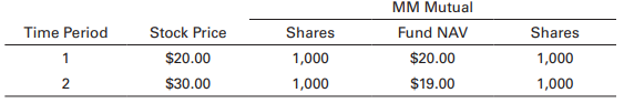 > Using the data in the following table, assume you are using a constant-dollar plan with a rebalancing trigger of $1,500. The stock price represents your speculative portfolio, and the MM mutual fund represents your conservative portfolio. What action, if