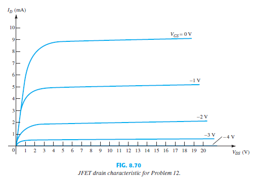> a. Determine Zi, Zo, and Av for the network of Fig. 8.71 if IDSS and VP are one-half the values of Problems 17. This is IDSS = 5 mA and VP = —3 V. b. Compare the solutions to that of Problem 17.