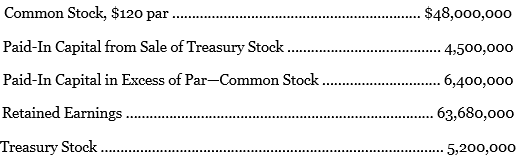 Common Stock, $120 par $48,000,000 Paid-In Capital from Sale of Treasury Stock.. 4,500,000 Paid-In Capital in Excess of Par-Common Stock. 6,400,000 Retained Earnings. 63,680,000 Treasury Stock. 5,200,000 ........