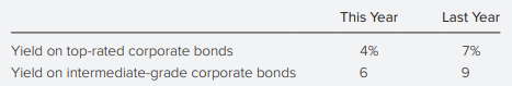 > Baa-rated bonds currently yield 6%, while Aa-rated bonds yield 5%. Suppose that due to an increase in the expected inflation rate, the yields on both bonds increase by 1%. a. What would happen to the confidence index? b. Would this be interpreted as bull