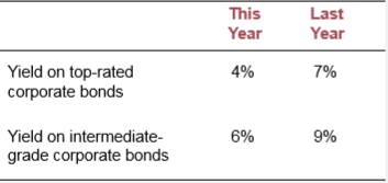 Using the following data on bond yields, calculate the change in the confidence index from last year to this year. What besides a change in confidence might explain the pattern of yield changes?
