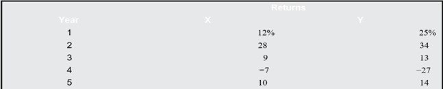 Using the following returns, calculate the arithmetic average returns, the variances, and the standard deviations for X and Y.