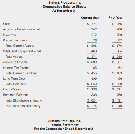 > Simons Products, Inc. reports the following comparative balance sheets and income statement for the current year.