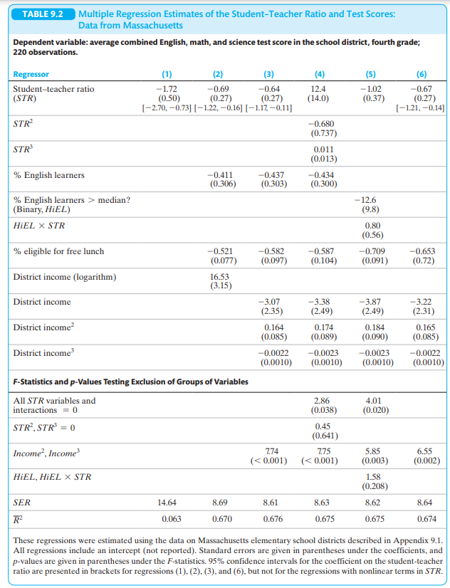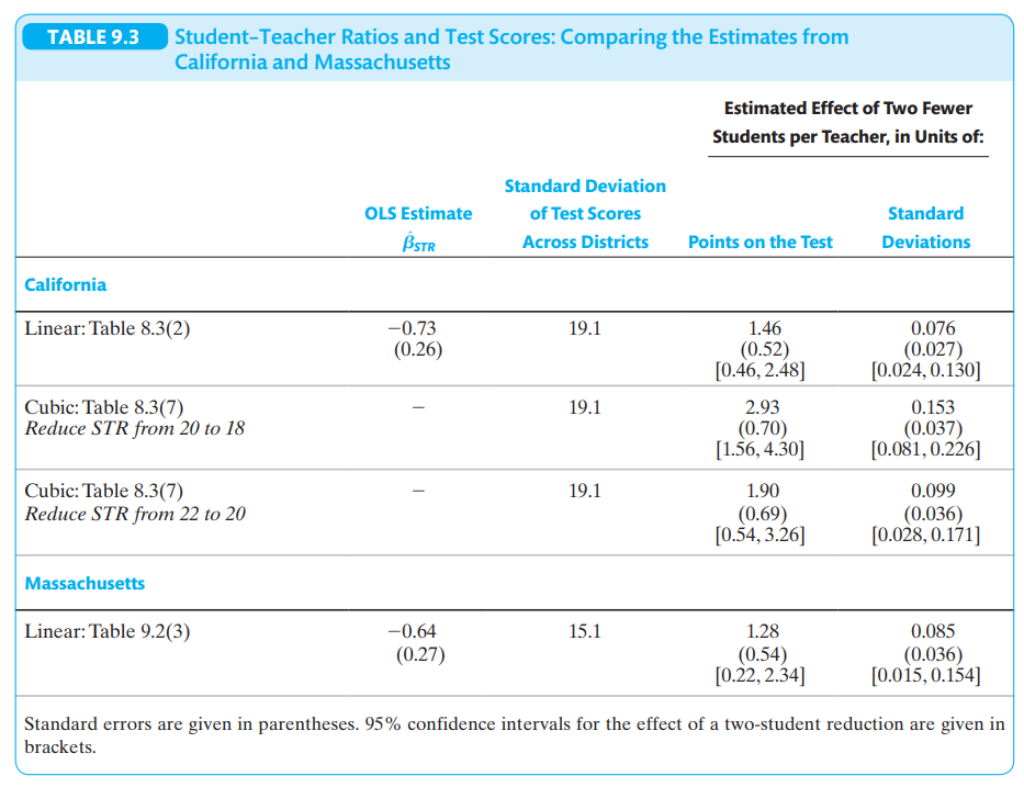 > Section 9.2 gave a list of five potential threats to the internal validity of a regression study. Apply that list to the empirical analysis and thereby draw conclusions about its internal validity. Data from Section 9.2: 1. Omitted Variable Bias 2. Meas