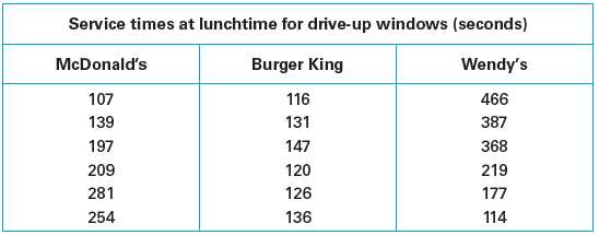 Using the samples of service times from all three restaurants, we obtain the analysis of variance results shown in Figure 10.7. Use a 0.05 significance level to test the claim that the three restaurants have the same mean service time.