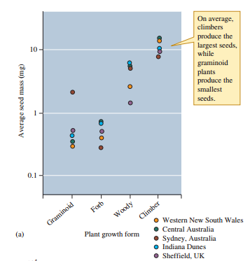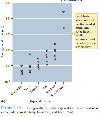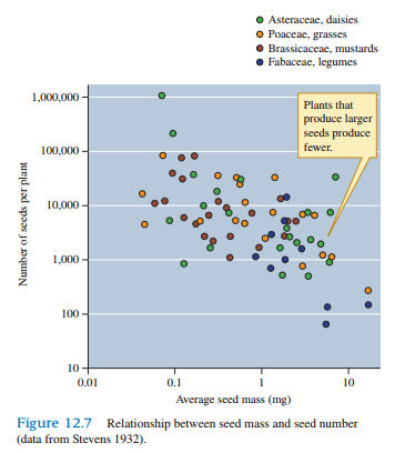 Using what you know about the trade-off between seed number and seed size (e.g., fig. 12.7) and patterns of variation among plants, predict the relative number of seeds produced by the various plant growth forms and dispersal strategies listed in figure 12.8?