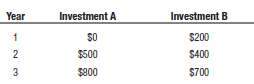 Year Investment A Investment B 1 $0 $200 $500 $400 3 $800 $700 2.