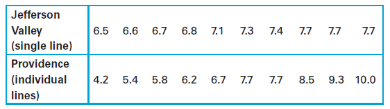 Waiting times (in minutes) of customers at the Jefferson Valley Bank (where all customers enter a single waiting line) and the Bank of Providence (where customers wait in individual lines at three different teller windows) are listed below. Determine whether there is a difference between the two data sets that is not apparent from a comparison of the means and medians. If so, what is it?