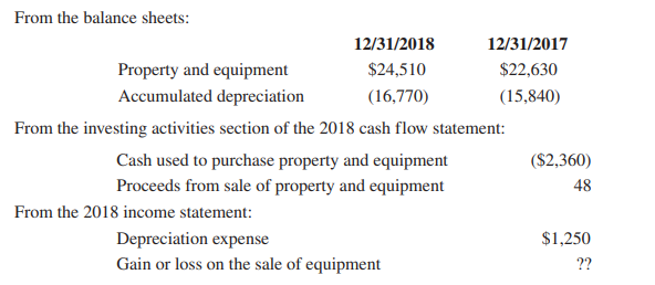 the cost of Property and Equipment sold and the Accumulated Depreciation on those assets.)