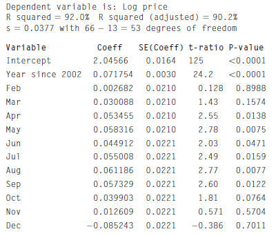 > In Exercise 39, we fit a linear regression for the number of monthly domestic visitors to Hawaii (for the years 2002 through 2006) using Time and dummy variables for the months as predictors. The R2 value was 96.6% and a residual plot against Time would