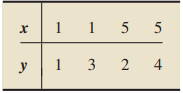 > An instructor at Arizona State University asked a random sample of eight students to record their study times in a beginning calculus course. She then made a table for total hours studied (x) over 2 weeks and test score (y) at the end of the 2 weeks. Her