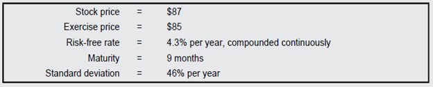 > A call option matures in six months. The underlying stock price is $75, and the stock’s return has a standard deviation of 20 percent per year. The risk-free rate is 4 percent per year, compounded continuously. If the exercise price is $0, what is the pr