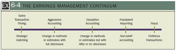 EX 6-4 THE EARNINGS MANAGEMENT CONTINUUM Sawy Aggressive Accounting Deceptive Accounting Transaction Fraudulent Timing Reporting Fraud Strategic matching Change in methods or estimates with Change In methods or estimates but with Non-GAAP Flctitious accounting transactions full disclosure little or no disclosure
