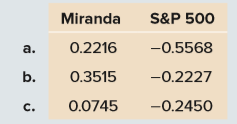> The rates of return on Cherry Jalopies, Inc., stock over the last five years were 17 percent, 11 percent, −2 percent, 3 percent, and 14 percent. Over the same period, the returns on Straw Construction Company’s stock were 16 percent, 18 per