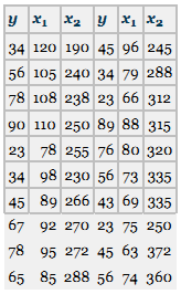 > Analyze the following data by using a multiple regression computer software package to predict y using x1 and x2. Notice that x2 is a dummy variable. Discuss the output from the regression analysis; in particular, comment on the predictability of the dum