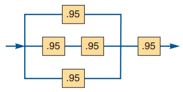 > How much would reliability improve if the medical control system shown in Problem 17.9 changed to the redundant parallel system shown in Problem 17.10? Data from Problem 17.9: A medical control system has three components in series with individual relia