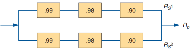 > What is the reliability of the following parallel production process? R1 = 0.95, R2 = 0.90, R3 = 0.98.