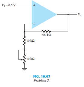 > Using the specifications listed in Table 10.3; calculate the typical offset voltage for the circuit connection of Fig. 10.75.