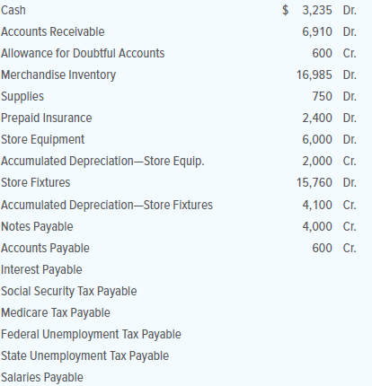 f. Three years ago the firm purchased store equipment for $6,000. The equipment was estimated to have a five-year useful life and a salvage value of $1,000.