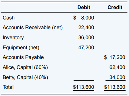 When Alice and Betty decided to incorporate their partnership, its trial balance was as follows: