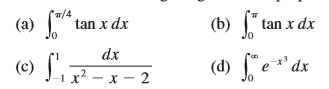 (a) " tan x dx (b) " tan x dx dx (c) ix? (d) fe*dx 2 – x – 2