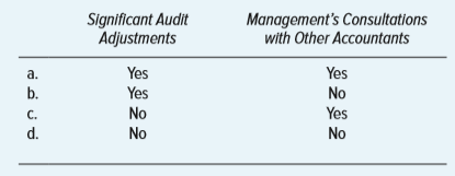 Significant Audit Adjustments Management's Consultations with Other Accountants a. Yes Yes b. Yes No Yes С. No d. No No