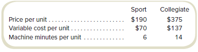 Wing Sporting Goods (WSG) is a small company that makes two models of a metal baseball batâ Sport and Collegiate. Both models are produced on a single machine. The price and costs of the two models are