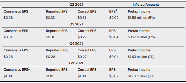 In Q2 2021, WLI reported EPS of $0.33 and its earnings release stated that it had âfinished with earnings per share that tied our all-time record.â In truth, WLI did not achieve record EPS in Q2 2021 because it understated its actual expenses for management bonuses by $1.58 million, which in turn inflated its pre-tax income by 5% and its EPS by $0.02.