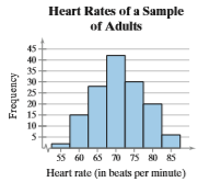 Heart Rates of a Sample of Adults 45 40- 35 15 10 5s 60 65 0 is 80 85 Heart rate (in bcats per minute) Frequency