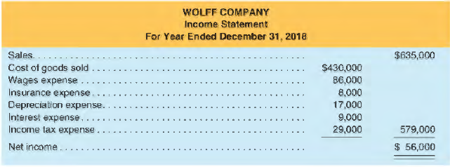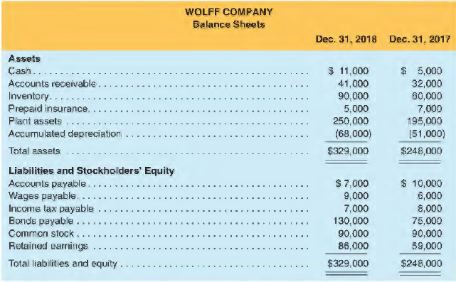 Wolff Company's income statement and comparative balance sheets follow.