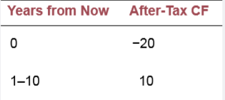 You are a consultant to a large manufacturing corporation considering a project with the following net after-tax cash flows (in millions of dollars):