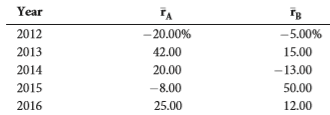 b. Suppose you had held a portfolio consisting of 50% of Stock A and 50% of Stock B. What would have been the realized rate of return on the portfolio in each year ? What would have been the average return on the portfolio during this period?