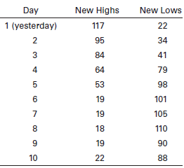 You are given the following information for the number of stocks making new highs and new lows for each day: