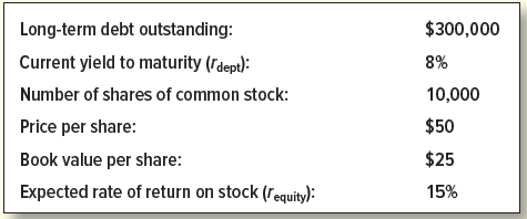 > Binomial Tree Farm’s financing includes $5 million of bank loans. Its common equity is shown in Binomial’s Annual Report at $6.67 million. It has 500,000 shares of common stock outstanding, which trade on the Wichita Stock Exchange at $18 per share. What