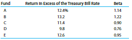Fund Return In Excess of the Treasury Bill Rate Beta 12.4% 1.14 13.2 1.22 11.4 0.90 9.8 0.76 12.6 0.95