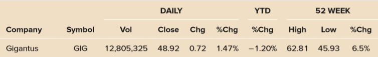 You found the following stock quote for Gigantus Corporation in todayâs newspaper. What was the stock selling for on January 1?