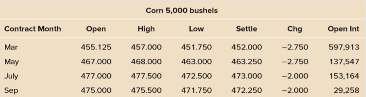 > How many of the March contracts are currently open? How many of these contracts should you sell if you wish to deliver 225,000 bushels of corn in March? If you actually make delivery, how much will you receive? Assume you locked in the settle price.