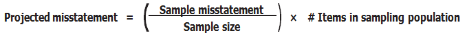 Difference projection is performed by calculating the average misstatement per sample item (e.g. individual customer account) and projecting it to the number of items in the sampling population according to the following formula: