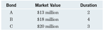 Bond Market Value Duration A $13 million 2 В $18 million 4 C $20 million