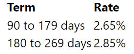 Your local credit union offers the rates shown in the following table for short-term non-redeemable, non-registered GICs.